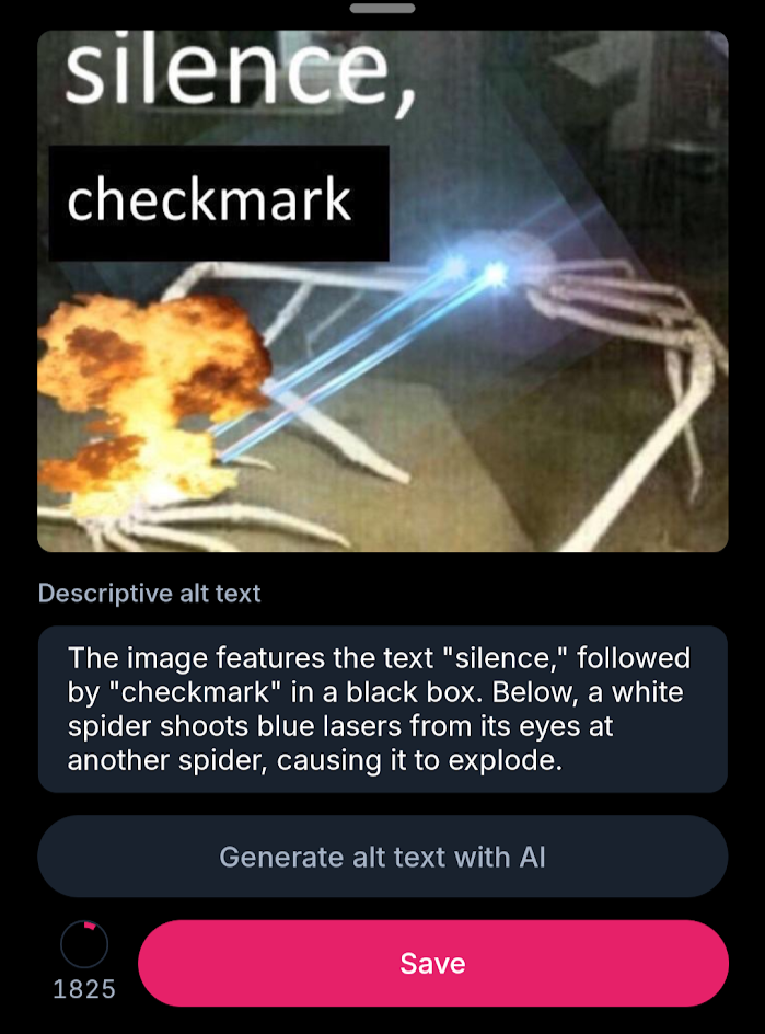 These screenshots are from cope.works, a friend’s bluesky client where we also added support for auto-generated alt text.